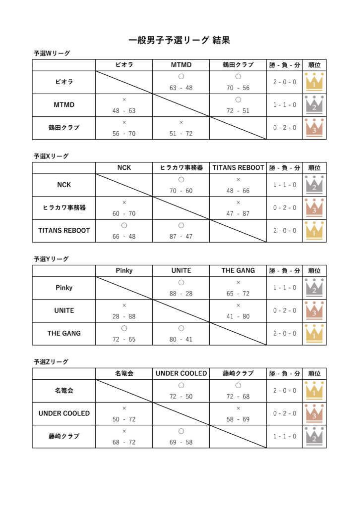 一般男子カテゴリは、3チームずつ4リーグに分かれ、予選リーグを行っています。